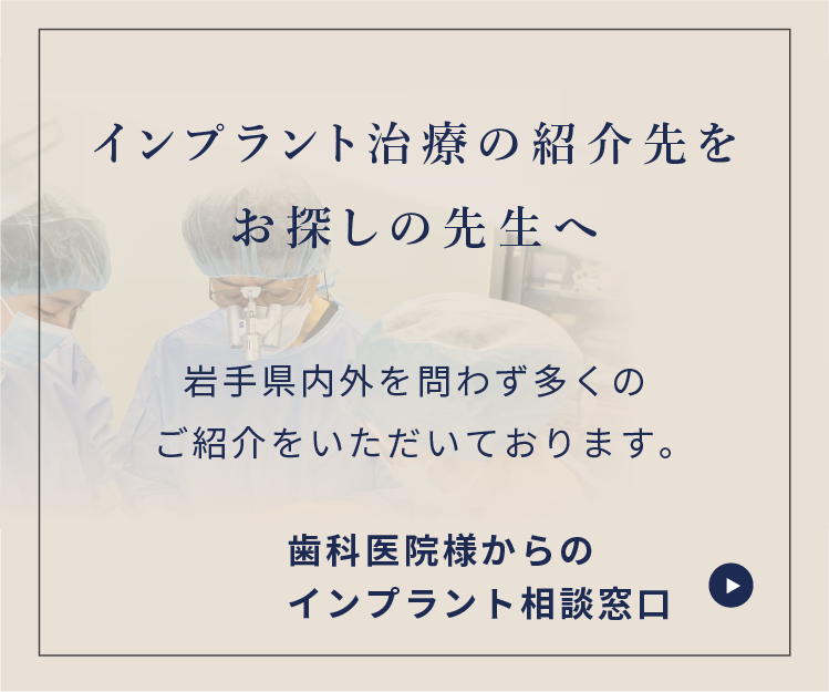 当院には、他の歯科医院様からのご紹介によるインプラント相談も多く寄せられています。「通常のインプラントが難しいケース」「全顎的な治療が必要な場合」など、同業の歯科医師から 「難しい症例を任せられる医院」としてご紹介いただいていることは、診断力や治療技術のひとつの証明だと考えています。
