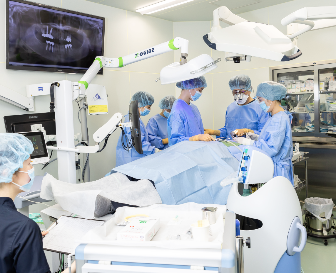 インプラント治療は、診断・治療計画・手術という全ての工程で、安全性と正確性が求められます。当院では、インプラントに特化した専用の設備環境を整備しています。 新しい先進的な医療設備や、安全基準の高い充実した環境を導入することで、患者様にとって安心・安全な治療をご提供できるよう努めています。