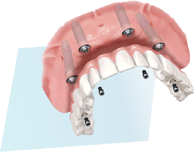 4本〜6本のインプラントで全ての歯を取り戻す治療です。 見た目・噛み心地・高い耐久性を実現します。歯がボロボロ、総入れ歯の方も、1回の手術でしっかり噛める歯を取り戻すことが可能です。